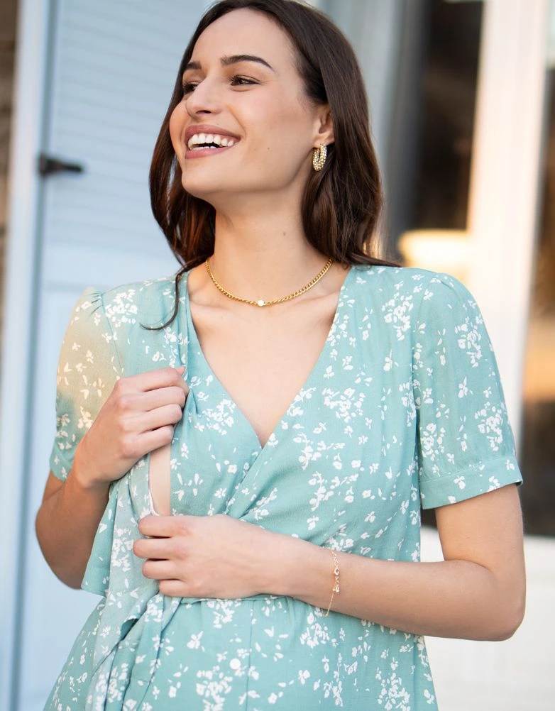 La couleur tendance de cet été fait son entrée chez Seraphine avec notre robe de grossesse et d’allaitement fleurie de couleur sauge ! Douce, féminine et super flatteuse, elle est parfaite pour vous accompagner pendant la grossesse et l’allaitement ! Grâce à son tissu doux, elle se porte comme un gant et vous accompagne pendant 9 mois. Son design boutonné y apporte une touche fraîche et tendance. Les liens à nouer se croisent sur le devant et se fixent à la taille Empire, mettant en valeur votre point le plus mince. Après la naissance de bébé, les liens s’ouvrent pour laisser place à un accès facile pour l’allaitement. De douces manches bouffantes et un imprimé ultra-féminin complètent le look – une option élégante pour n’importe quelle situation.