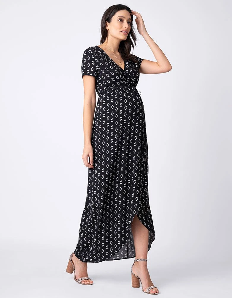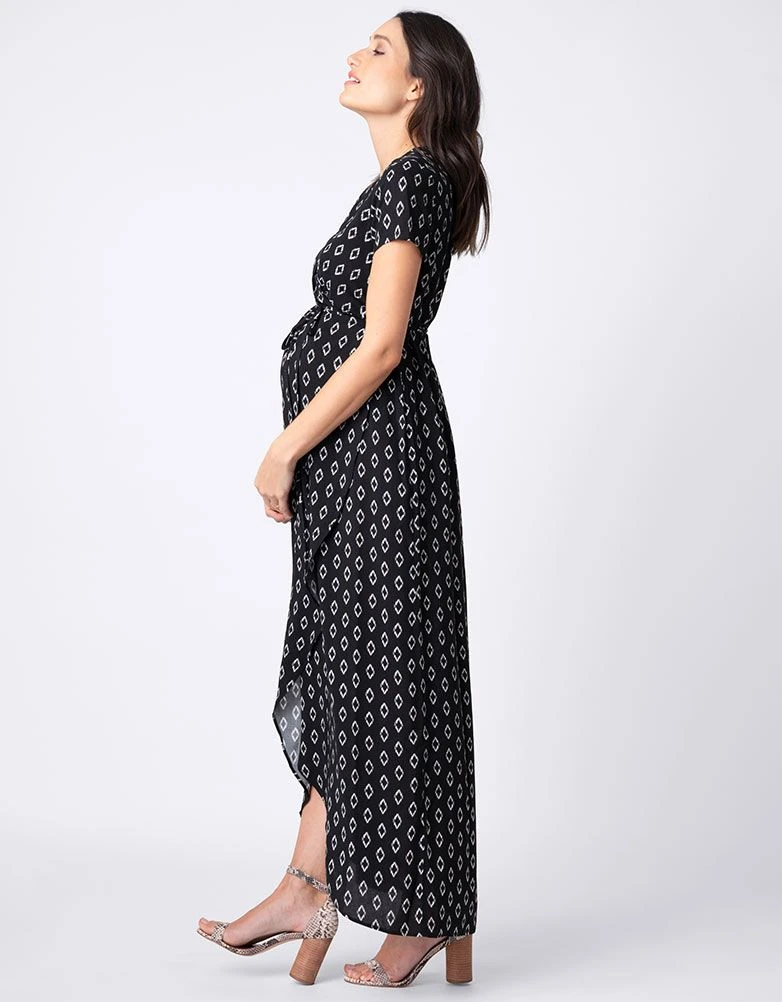 Craquez pour notre sublime robe de grossesse longue coupée portefeuille. Elle sera votre indispensable à ajouter à votre nouvelle garde-robe de future maman. Douce, légère et réalisée afin de sublimer vos nouvelles formes de femme enceinte, cette élégante robe de maternité vous offrira une allure féminine et légère. La ceinture accentuera votre taille empire tandis que la longueur de la robe allongera votre silhouette. Il vous suffira de sandales pour composer une tenue décontractée.