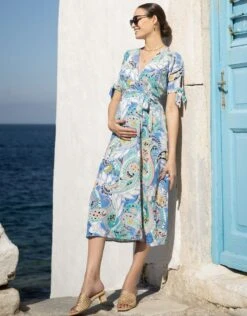 Notre robe grossesse mi-longue cache-cœur à motif cachemire est conçue pour flatter votre silhouette à tous les stades de la grossesse. Elle s’adapte à vos nouvelles courbes ! Fabriqué en viscose tissée douce, ce modèle cache-cœur classique met en valeur votre taille empire et garantit une coupe ajustable qui évolue avec vous. Le magnifique imprimé cachemire et les manches à nouer complètent le look – parfait pour toutes les occasions.