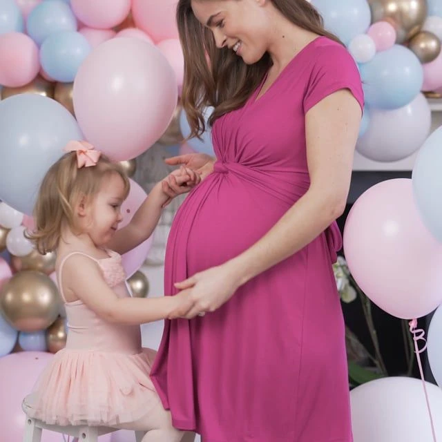 Nouée sur le devant et disponible en plusieurs coloris, cette robe grossesse est notre robe signature, elle sublime la silhouette et vos courbes de future maman. Celle-ci en rose fuchsia a été porté par Kate Middleton sur son premier portrait officiel de famille. Conçue dans un jersey fluide et ultra confortable, cette robe maternité féminine est parfaite pour l’été ou encore pour une baby shower.