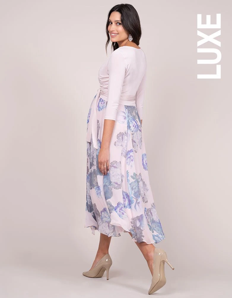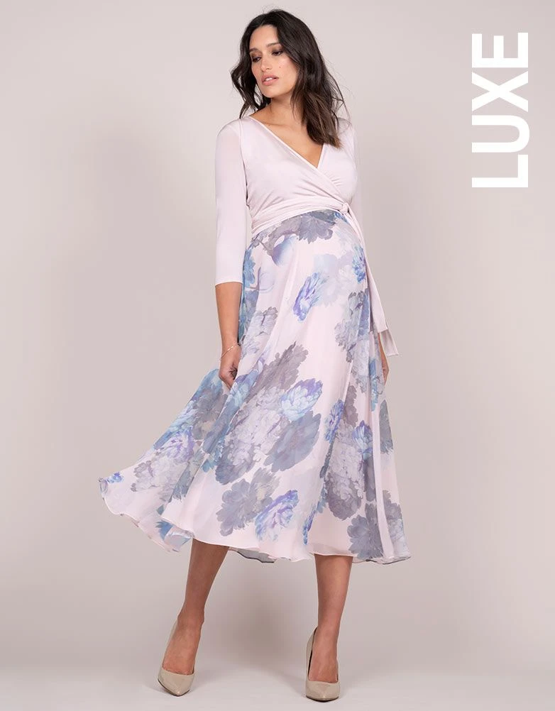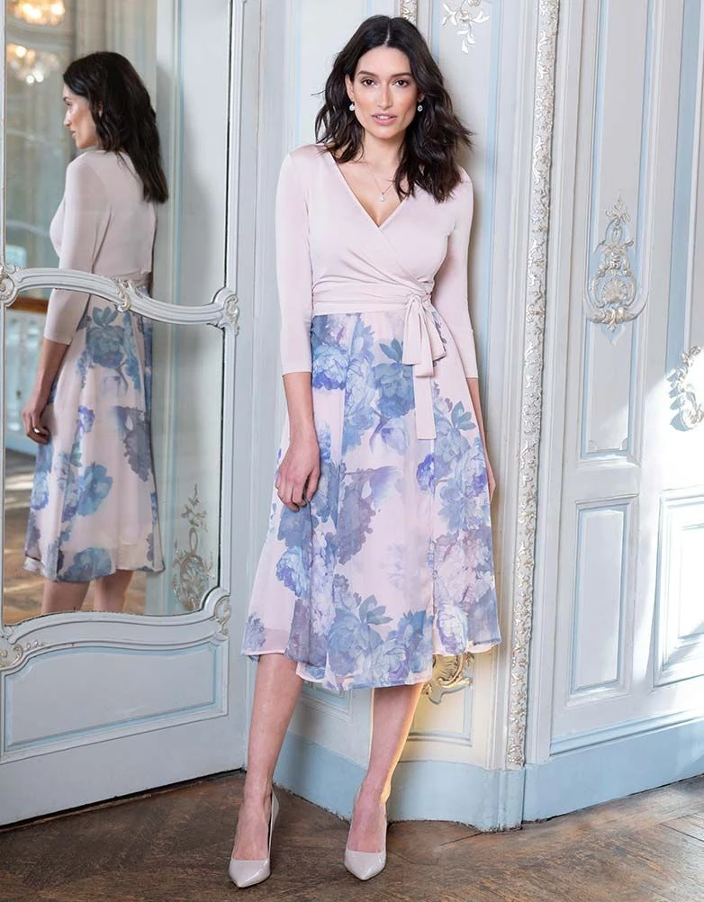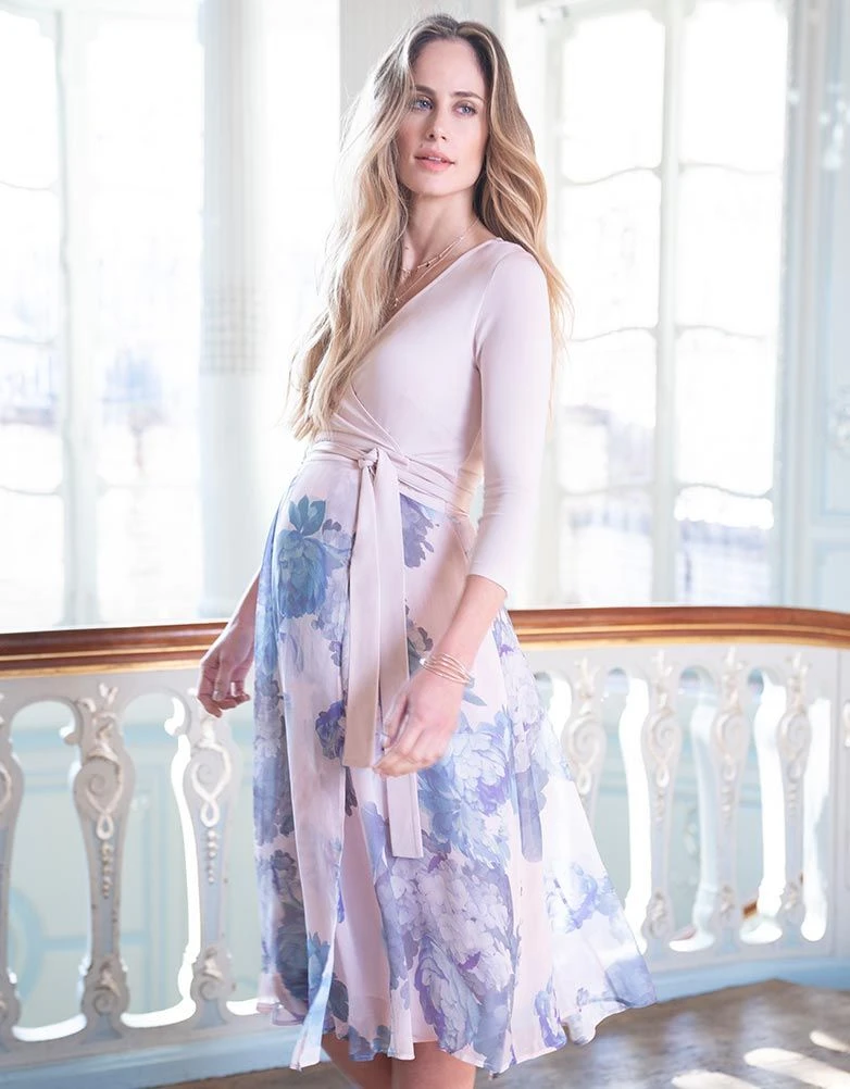 Ultra chic et glamour, cette robe grossesse portefeuille fleurie est une superbe option à avoir dans sa garde-robe avant, pendant et après la grossesse. La sublime jupe fluide à imprimé florale drape vos nouvelles courbes à la perfection tout au long de votre grossesse, mettant en valeur une taille marquée. Le haut noir cache-coeur offre un très joli décolleté féminin tout en vous permettant d’allaiter aisément et en toute discrétion votre bébé. Soyez somptueuse enceinte en toutes occasions !