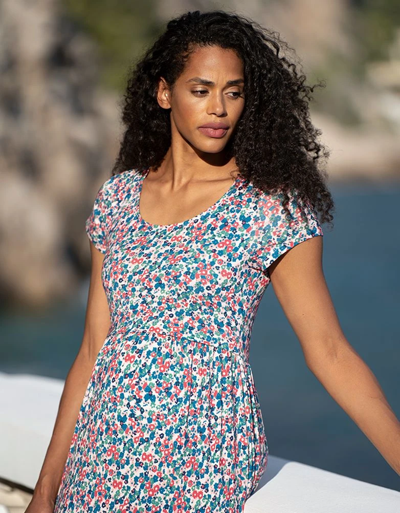 Seraphine Robe Longue Grossesse à Allaitement En Jersey à Fleurs Multicolores