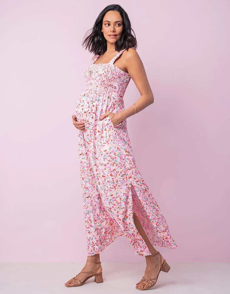 On adore notre nouvelle robe longue de grossesse et d’allaitement fleurie pour l’élégance de son imprimé et son tombé fluide grâce à sa matière 100% viscose ! Son décolleté stretch s’assure de mettre votre point le plus mince en valeur, tout en offrant un accès facile à l’allaitement après la naissance de bébé. C’est la robe longue qu’il vous faudra absolument avoir cet saison !