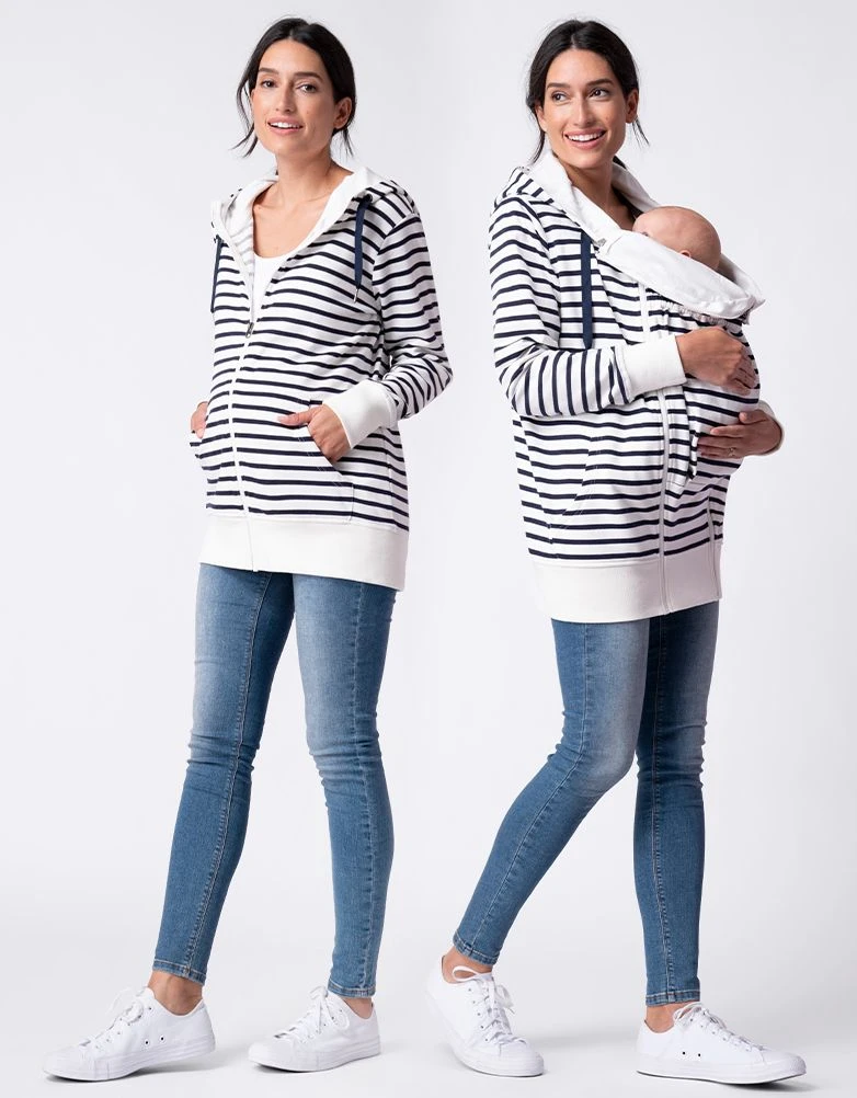Seraphine Sweat à Capuche 3 En 1 De Grossesse Et Portage à Rayures – Bleu Marine Et Blanc