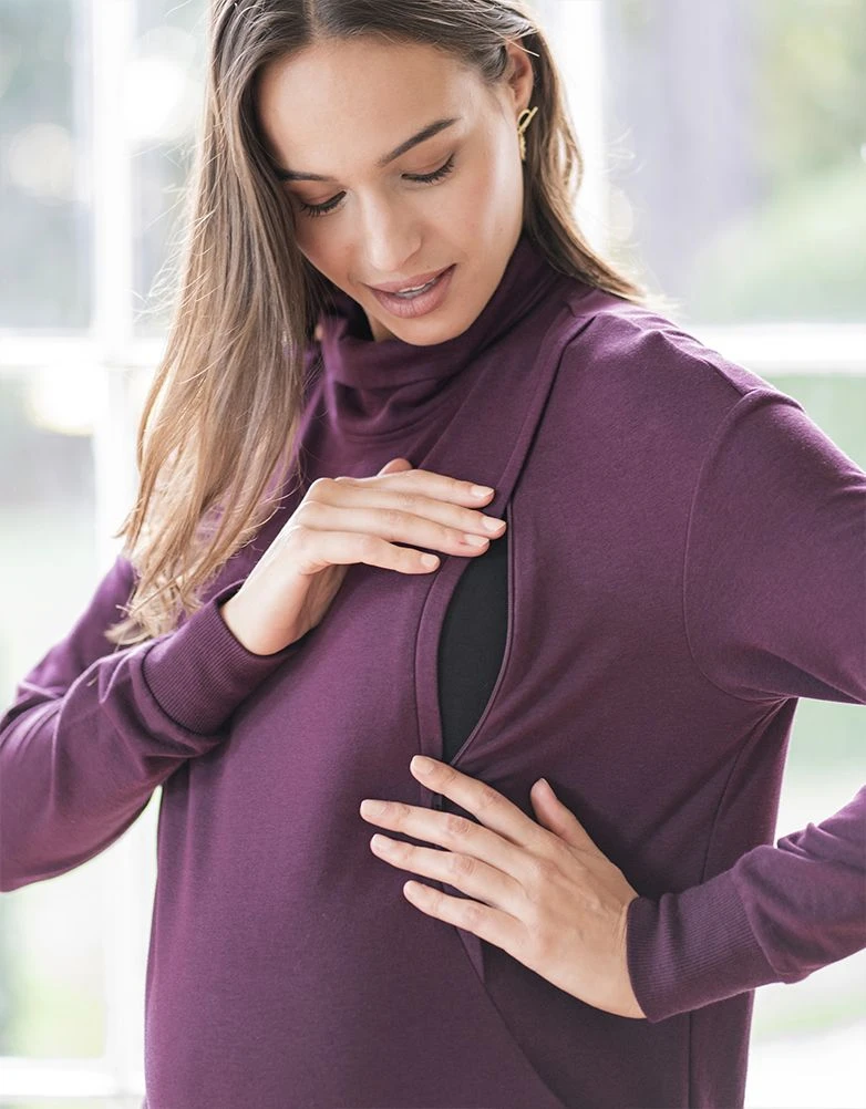 Super doux et simple, notre sweat de grossesse et d’allaitement de couleur prune est un véritable classique que vous ne voudrez pas enlever. Confectionné dans le tissu stretch le plus doux, ce modèle évolue avec vous tout au long de la grossesse. Et après la naissance de bébé, des fermetures éclair discrètes s’ouvrent sur le devant pour faciliter l’allaitement. Portez-le avec un legging ou un jean pour un look décontracté en dehors des heures de travail.