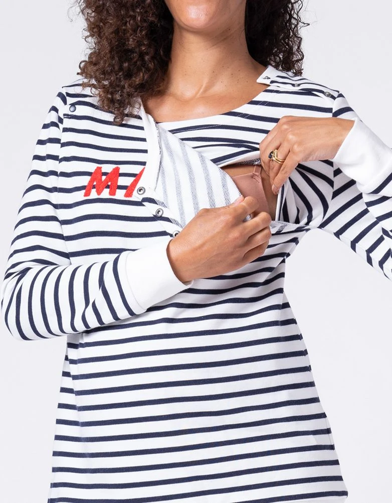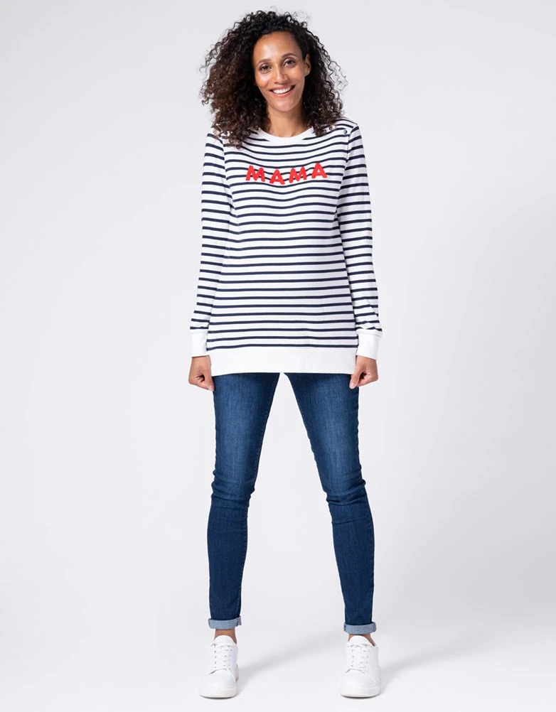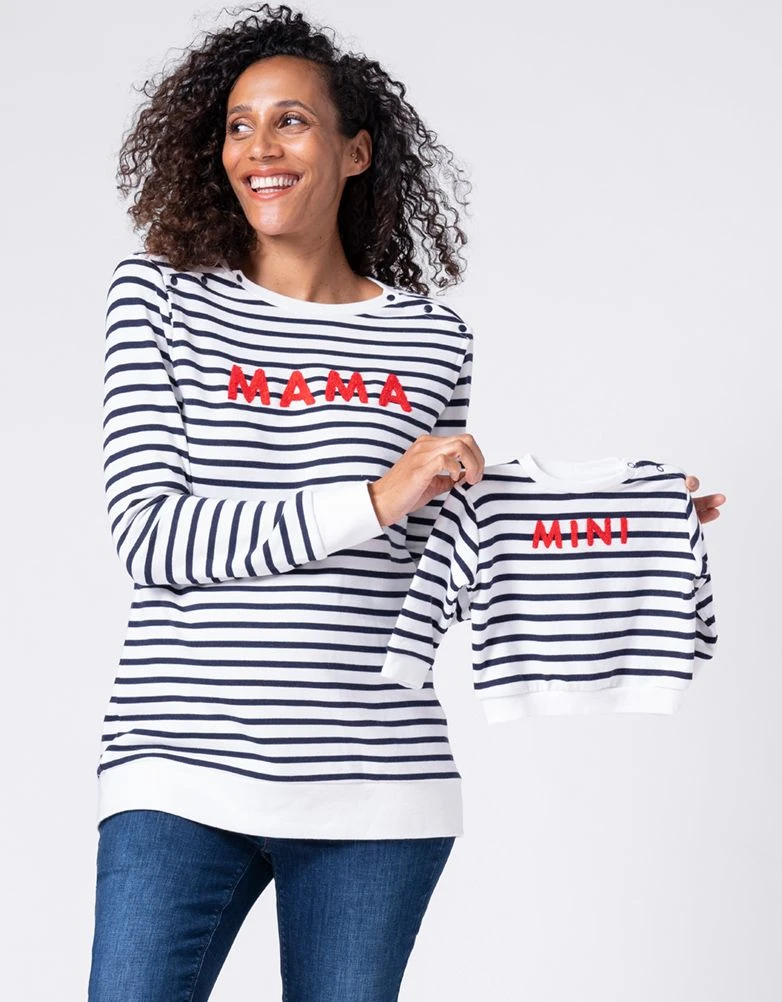 Vous avez aimé notre collection assortie pour maman et bébé, alors VOUS allez ADORER nos sweats rayés Mama et Mini ! Dans un mélange de coton doux, ils sont fantastiques à porter et sont doux pour les peaux sensibles (la vôtre et celle de votre bébé) ! Le sweat Mama s’adapte à la grossesse, puis à l’allaitement avec des boutons-pression au niveau des épaules. La version pour bébé convient aux bébés de 0 à 6 mois et comporte des boutons-pression à l’épaule pour faciliter le change. Avec leurs slogans assortis en rouge, ces vêtements sont de fantastiques cadeaux pour les baby shower !