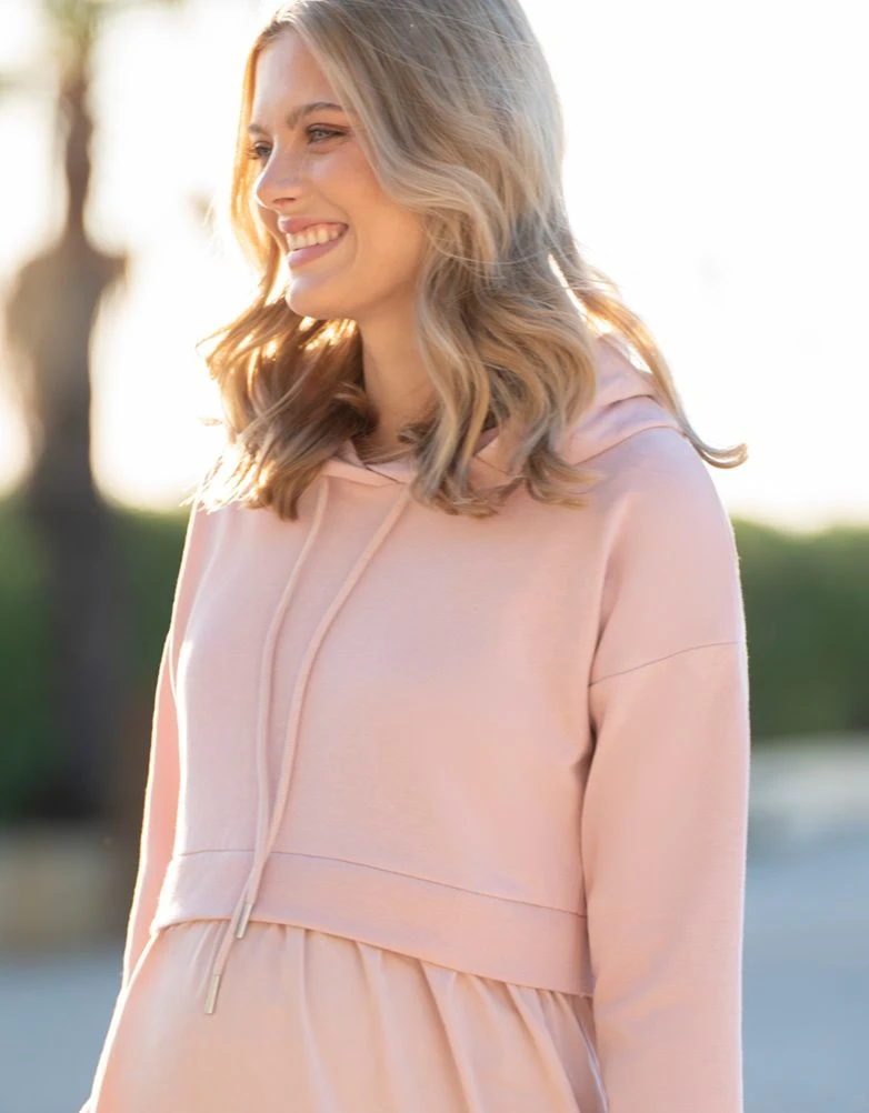 Seraphine Top De Grossesse à Allaitement à Capuche Rose Avec Sous-chemise Intégrée