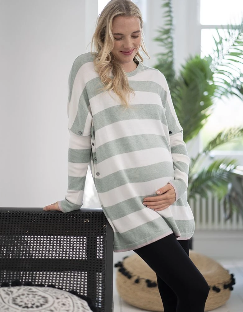 Seraphine Top De Grossesse Et D’allaitement à Rayures épaisses – Vert Et Blanc
