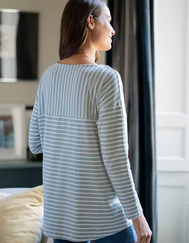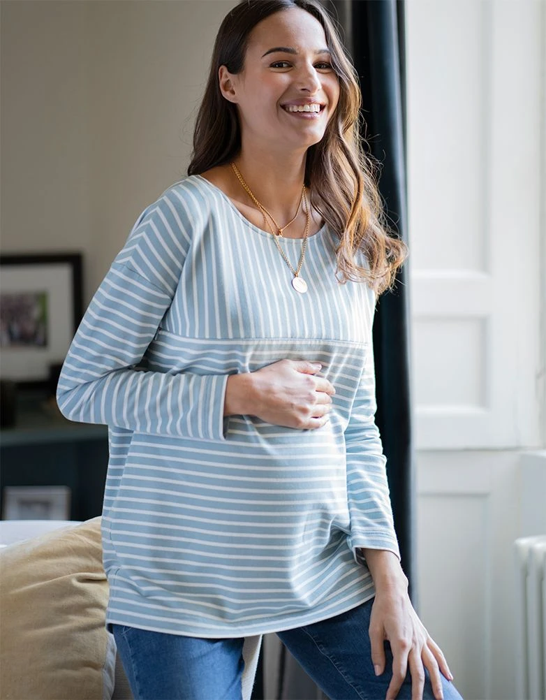 Seraphine Top De Grossesse Et D’allaitement à Rayures – Vert Sauge Et Blanc