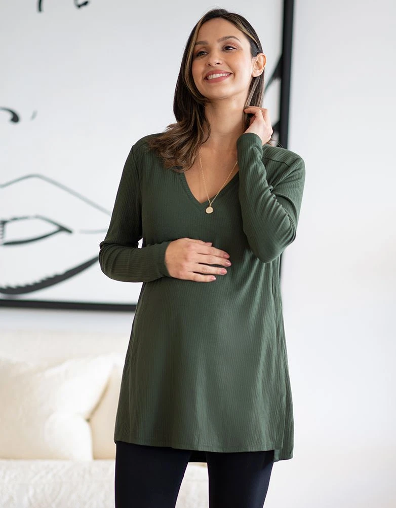 Seraphine Top De Grossesse Et D’allaitement En Jersey Côtelé à Manches Longues – Kaki