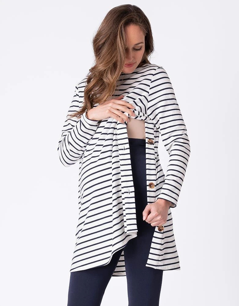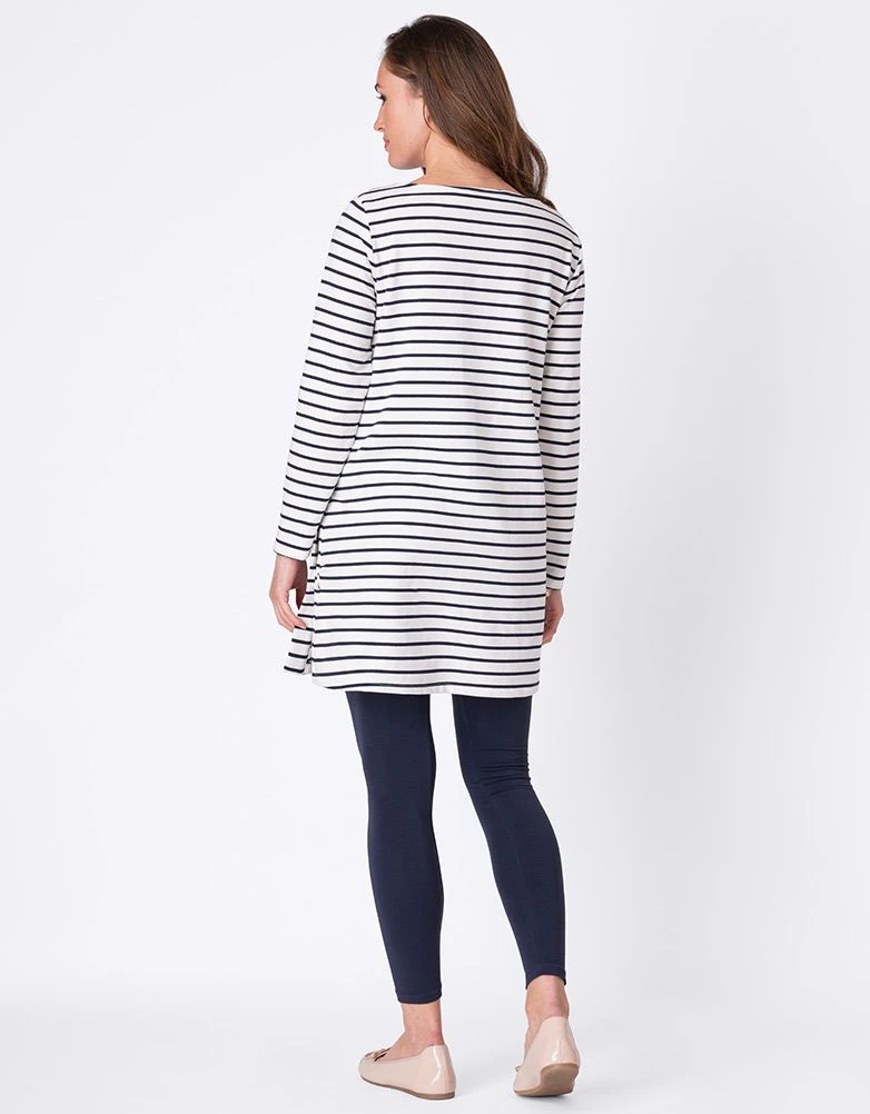 Notre tunique de grossesse et d’allaitement à rayures est essentielle pour votre quotidien, parfaite pendant la grossesse et au-delà. Fabriquée en jersey de coton respirant, cette tunique offre beaucoup d’espace pour bébé, ainsi qu’une ceinture à nouer optionnelle pour cintre votre taille Empire. Après la naissance de bébé, des boutons s’ouvrent sur les côtés pour un accès facile à l’allaitement.