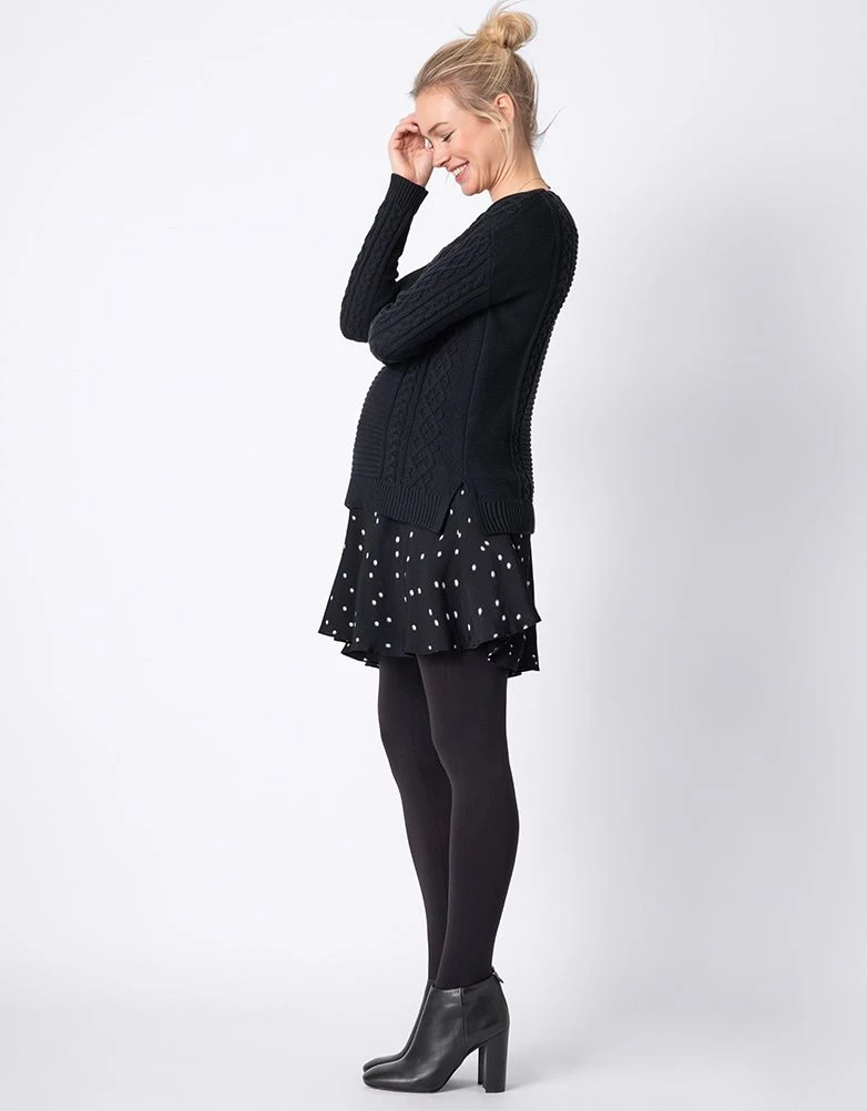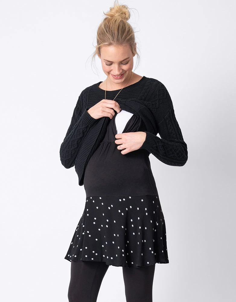 Notre tunique de grossesse et allaitement doublée est parfaite pour la grossesse et au-delà. Le pull en maille chic offre beaucoup d’élasticité, tandis que la jupe tissée imprimée ressort à l’ourlet, ce qui ajoute de la longueur pour une silhouette élancée. Après la naissance de bébé, le pull en maille se soulève pour permettre un accès facile à l’allaitement. Portez-la avec des leggings ou des jeans skinny pour un look décontracté au quotidien.