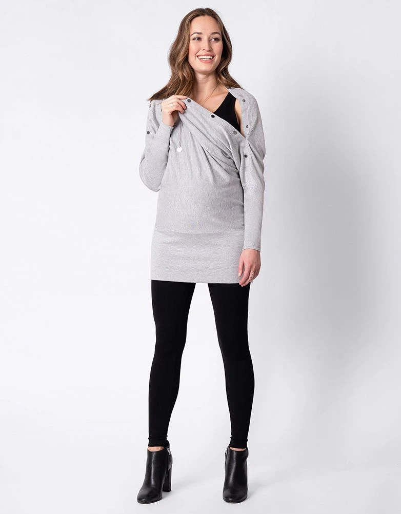 Cosy et confortable, cette tunique de grossesse et d’allaitement en maille grise de Seraphine est parfaite pendant la grossesse et encore mieux après. Cette maille douce offre une coupe décontractée avec beaucoup de stretch, ce qui en fait la tunique idéale pour s’adapter à vos courbes changeantes. Après l’arrivée de bébé, elle est dotée de simples boutons-pression qui s’ouvrent sur les épaules pour faciliter l’allaitement. Portez-la avec un legging ou un jean slim pour une tenue de tous les jours.