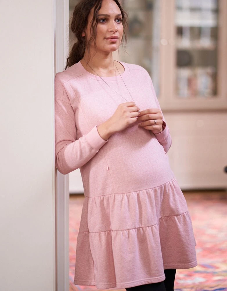 Douce, féminine et ultra-facile à porter, notre tunique de grossesse et d’allaitement rose est la pièce à avoir dans votre garde-robe de maternité. Conçue à partir d’un doux mélange de coton et coupée avec une finition à volants, cette tunique s’adapte parfaitement à votre silhouette pendant vos 9 mois. Après l’arrivée de bébé, les coutures princesse flatteuses dissimulent des fermetures éclair ultra-discrètes, parfaites pour un accès facile à l’allaitement.