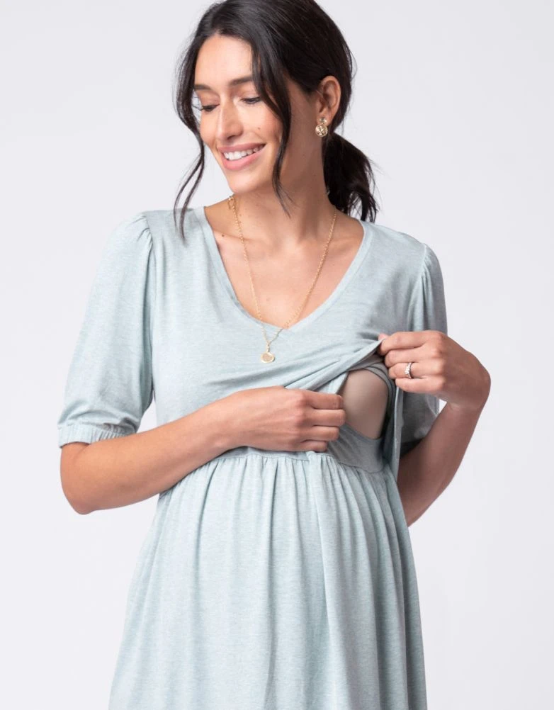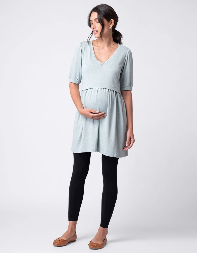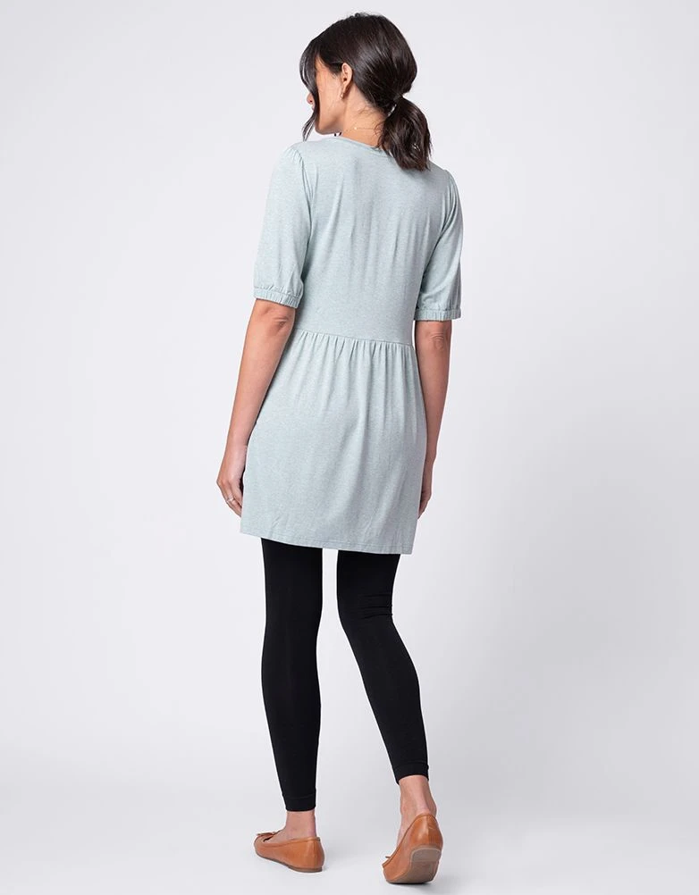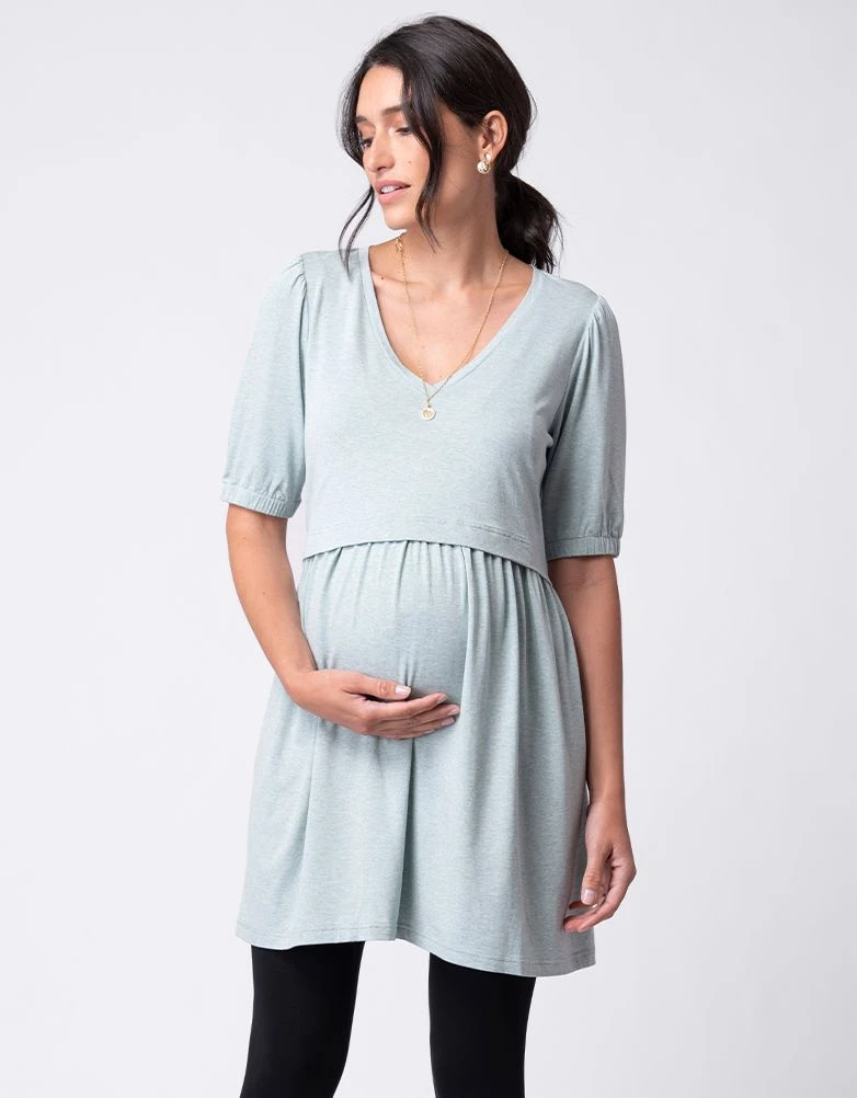 Seraphine Tunique Smockée De Grossesse Et D’allaitement Vert Sauge à Col En V