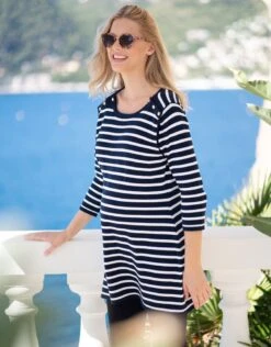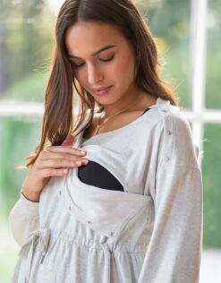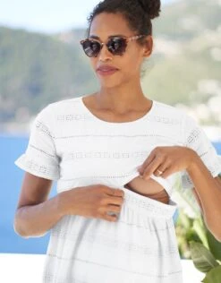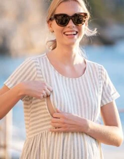 Seraphine Robe Cache-cœur Grossesse Et Allaitement En Coton à Rayures Sauge Et Blanche