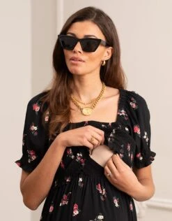 Seraphine Robe De Grossesse à Allaitement Noire à Imprimé Fleuri