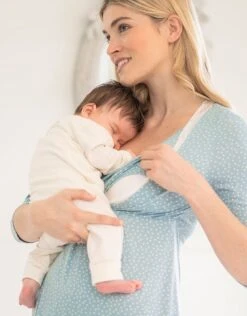 Seraphine Chemise De Nuit De Maternité à Allaitement Bordée De Dentelle Sauge Et à Pois Blancs