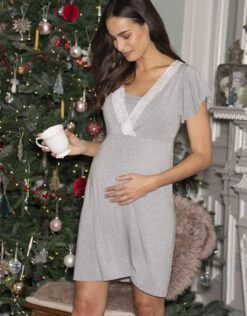 Seraphine Chemise De Nuit Grossesse Et Allaitement – Gris Clair