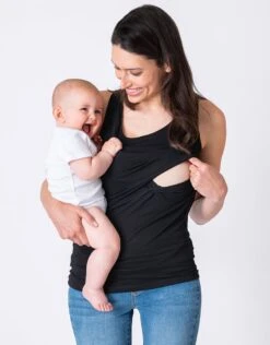 Seraphine Haut Contact Peau à Peau En Coton Sans Manches – Noir