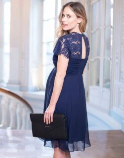 Seraphine Robe De Cocktail Grossesse Soie Et Dentelle – Bleu Marine